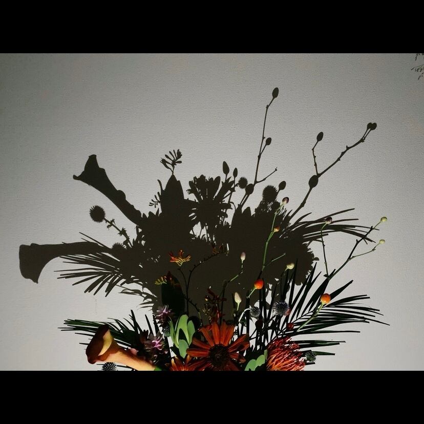 「関西を中心に活動するフラワープロダクト”asopo"が実際にmakingした花をベースに陰と陽、はみ出すオーラ、明と暗、平和パワー& 想像を膨らませ製作したフラワーアートTee。昔旅先の骨董品屋で購入したガタガタの額装にいれて飾るイメージで。茎は紫(パーポー)EB印 」