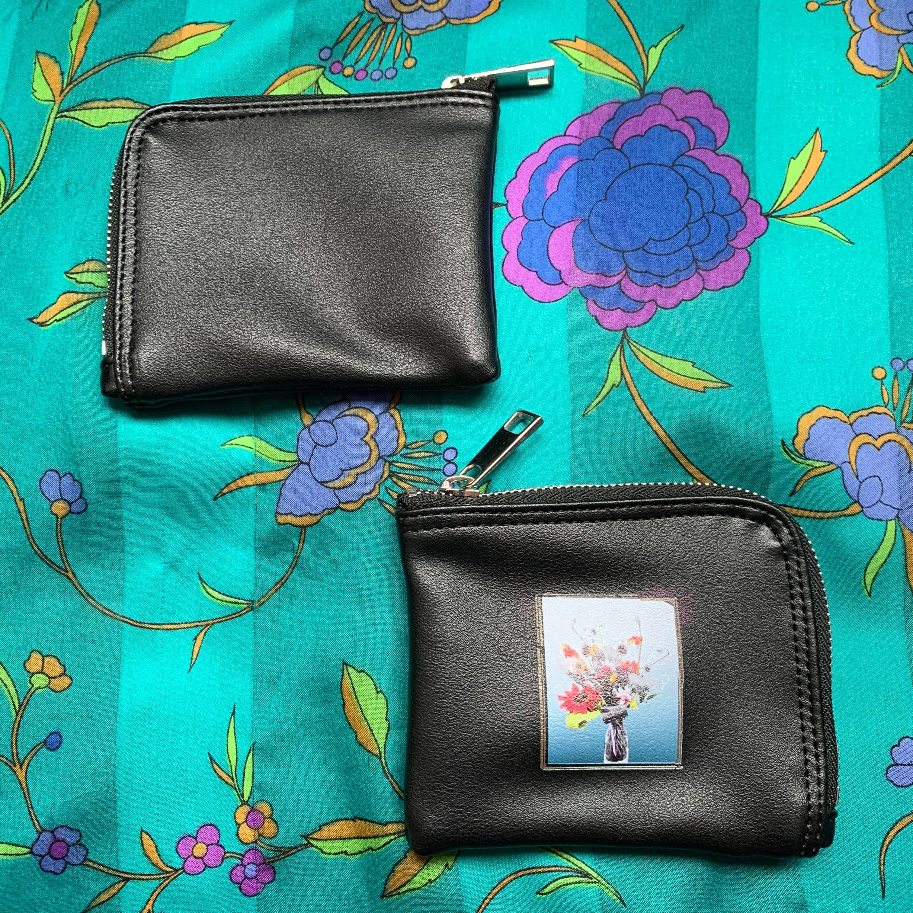 くたっとした質感のPUレザー素材の財布。大きめのZIPと財布にプリントされたミニマムな”flowEr aura”が他にはない独特の雰囲気を放ってます。