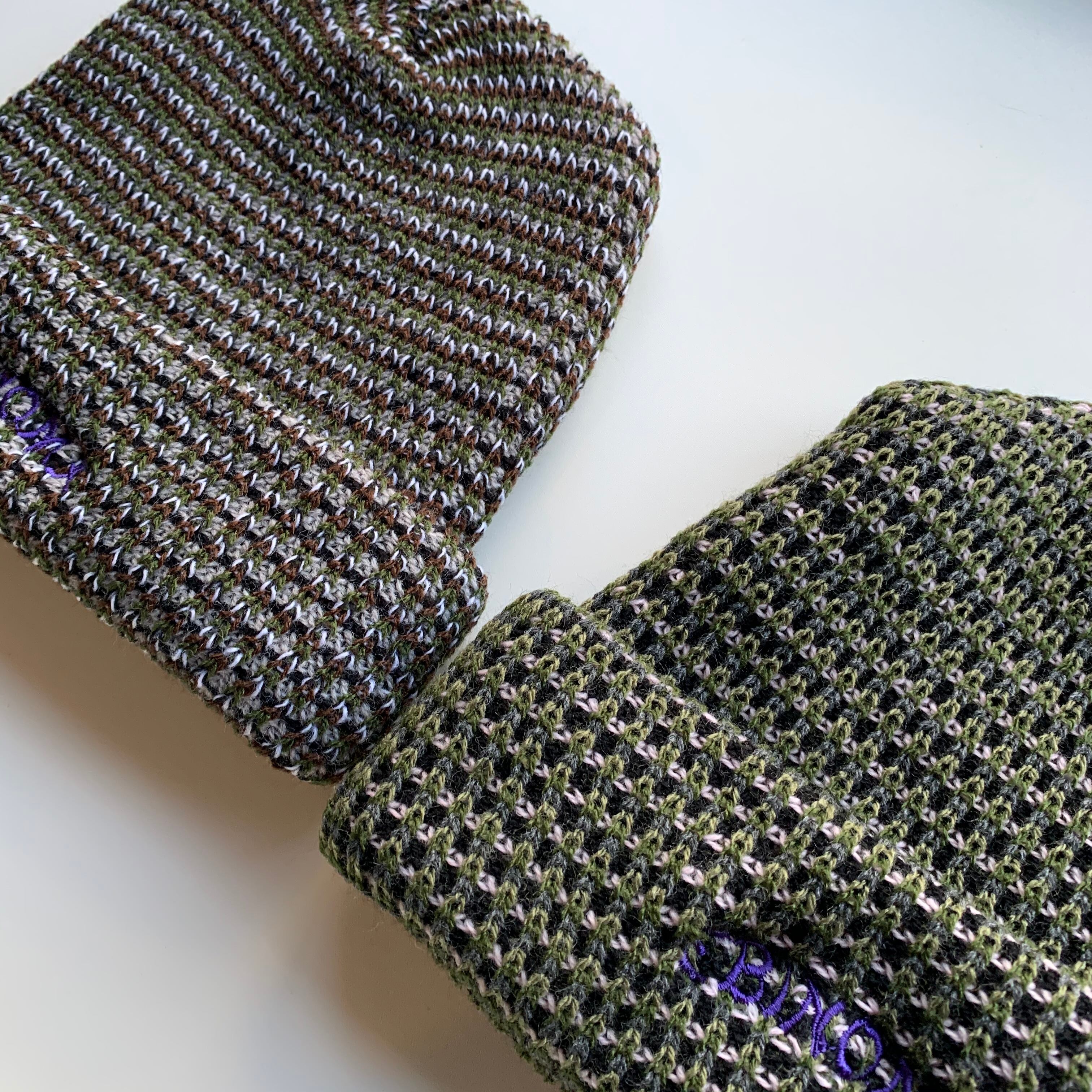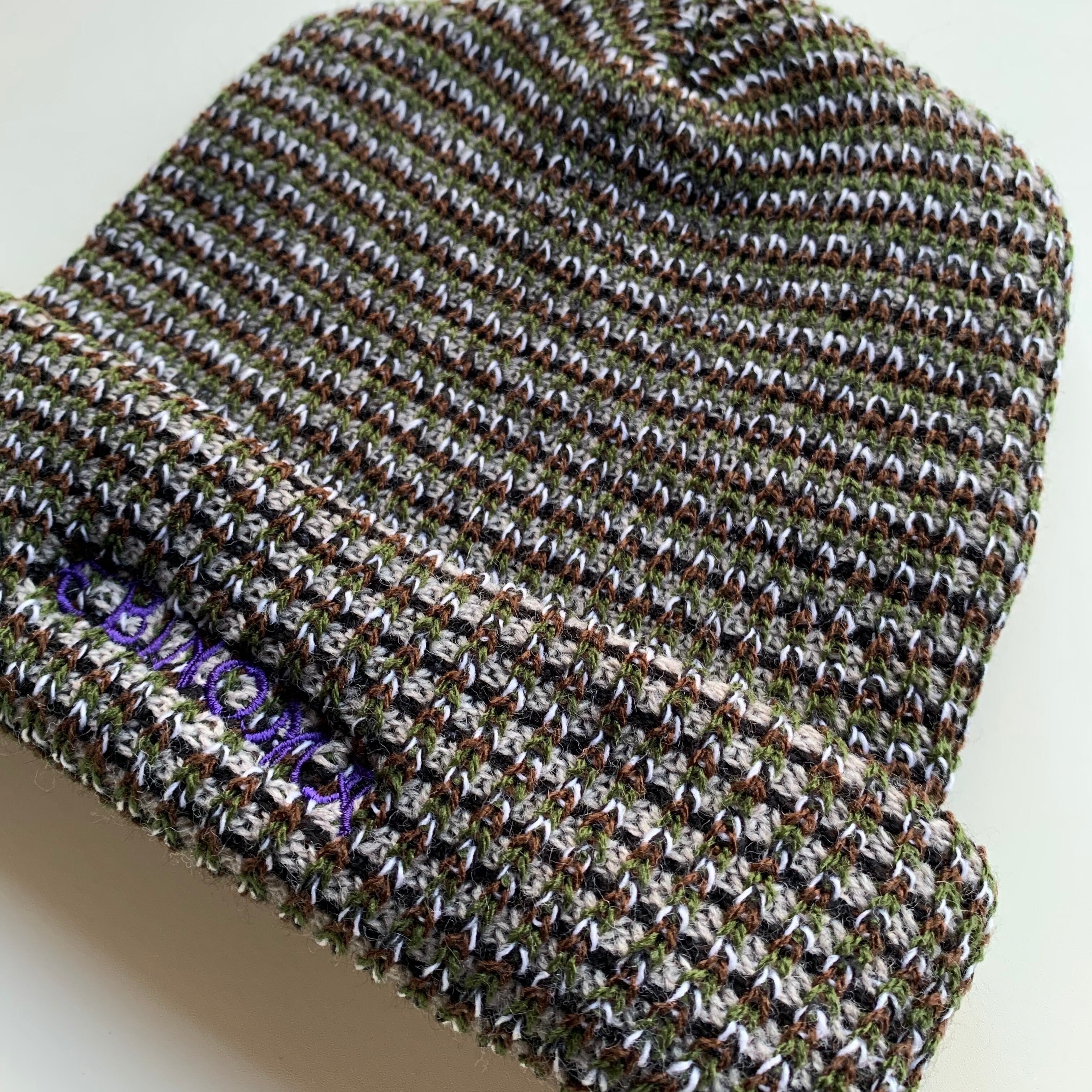 EBINOMA KANFU Logo Birds eye beanie (olive brown purple mix)