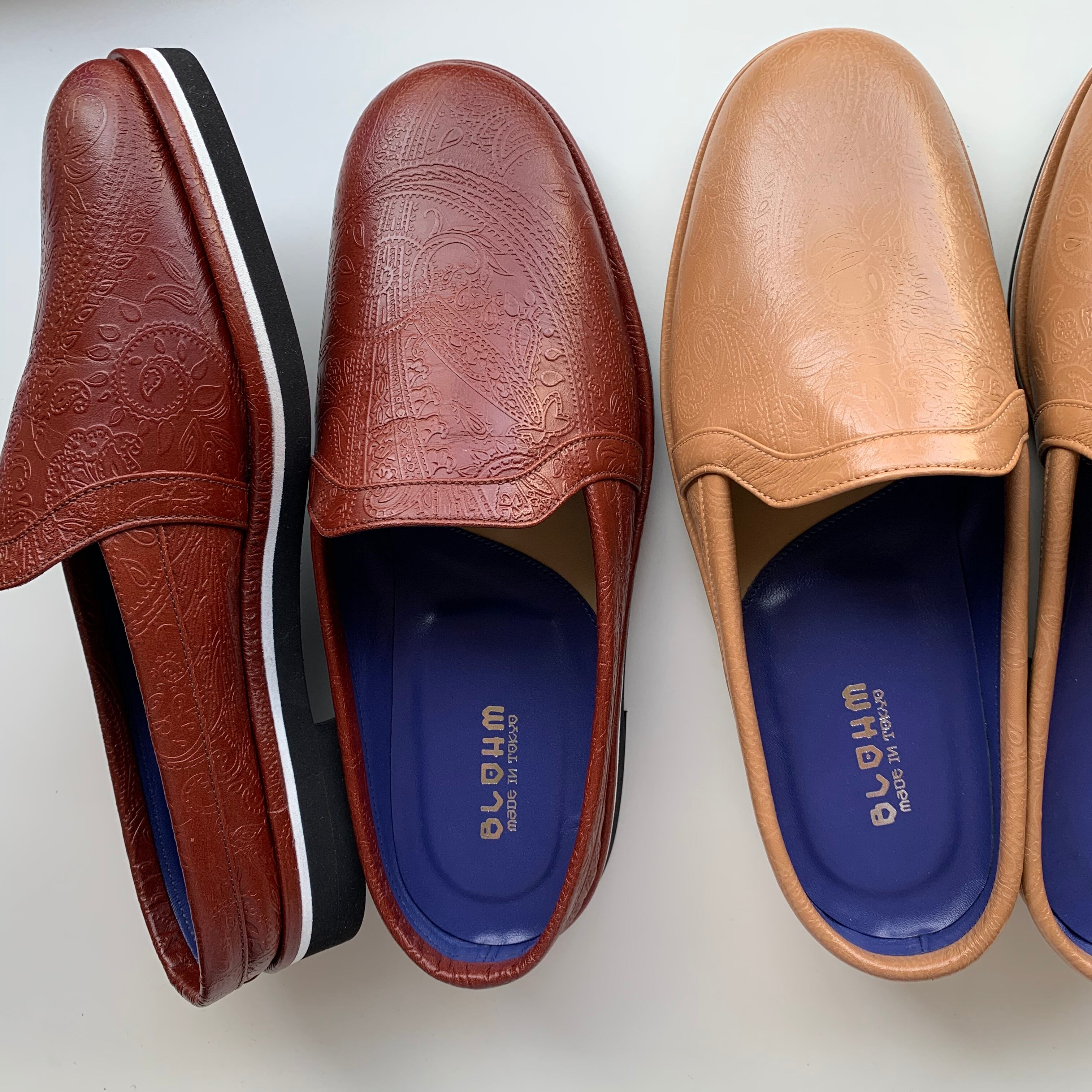 アッパー全体にペイズリー柄がスタンプされたエンボスレザーを使用しております。