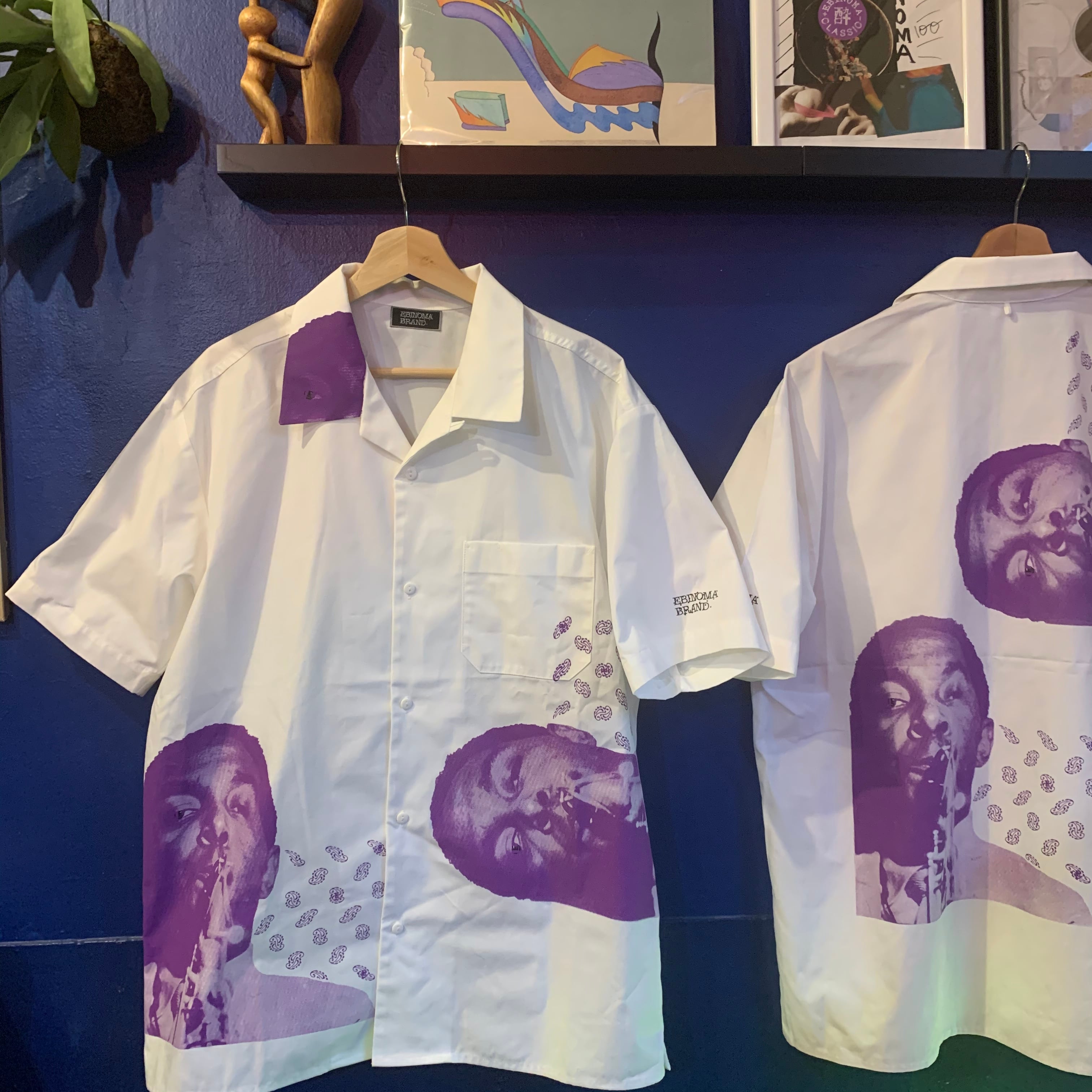 EBINOMA直営店「E」4周年(2021年)のメインアートとして登場した"charliE parker "を総柄で落とし込んだ逸品。全て職人の手刷りのため少量生産となります。